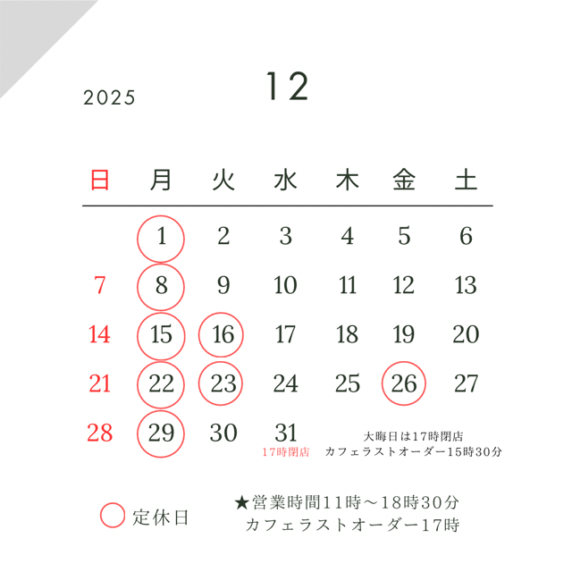 最新のお知らせや定休日以外のお休みは随時 Instagram にてご案内しております。